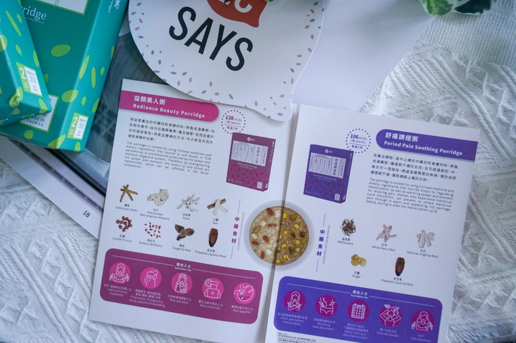 湯藥粥系列有三款:「益顏美人粥」、「舒痛調經粥」、「輕盈素身粥」,係咪聽到個名都覺得肯定好補好正呢!
